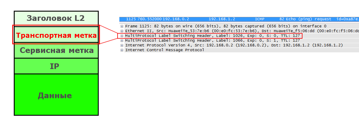 Таким образом, нам необходима транспортная метка. Она верхняя в стеке.