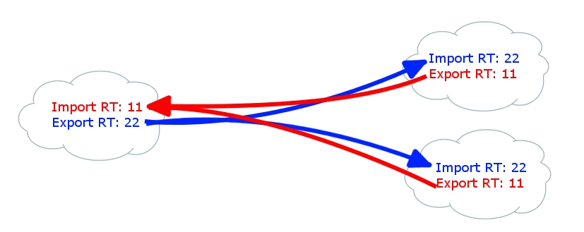 Почему так? Почему нельзя просто дать route-target both 64500:1, например, на всех VRF? Основная идея концепции Common Service — предоставить доступ к нужному VRF клиентам, но не позволить им общаться друг с другом напрямую, чтобы обеспечить изоляцию, как того требует определение VPN. Если настроить одинаковый RT на всех VRF, то маршруты будут спокойно ходить между ними. При указанной же выше конфигурации у всех клиентских VRF есть RT 64500:22 на импорт (все будут получать маршруты Internet), и также у них есть RT 64500:11 на экспорт, но только у VRF Internet есть такой RT 64500:11 на импорт — только VRF Internet будет получать маршруты клиентов. Друг с другом они обмениваться не смогут. Главное, чтобы Internet не занялся филантропией и не начал маршрутизировать клиентский трафик.