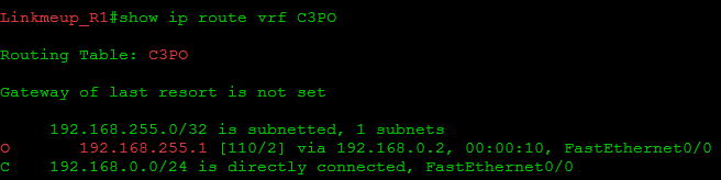 В таблицах маршрутизации VRF C3PO должны появиться настроенные сети, как Directly connected.
