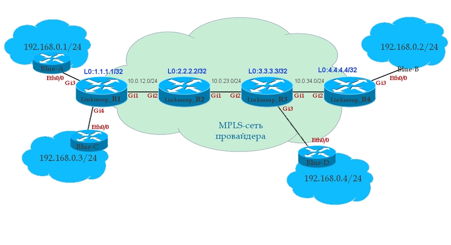 Аналогичные манипуляции производим на Linkmeup\_R3 и Linkmeup\_R4.