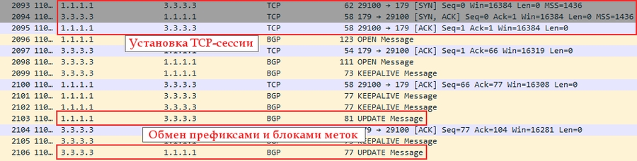1. BGP установил сессии и разослал свои Update'ы.