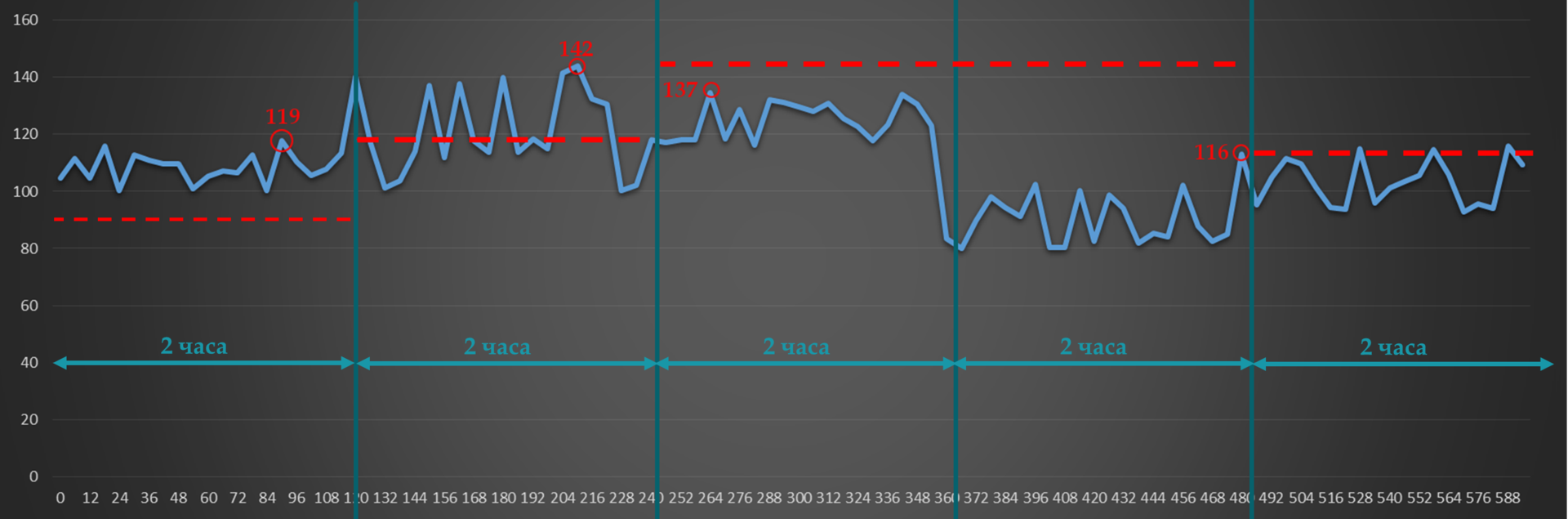Примерно так при двухчасовом интервале будет выглядеть 24-часовое поведение auto-bandwidth.