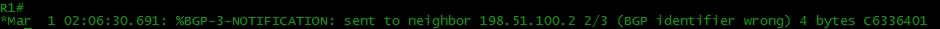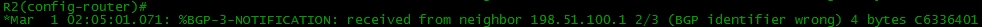 б) одинаковый Router ID R2 отправляет в OPEN Router ID, который совпадает с ID R1: