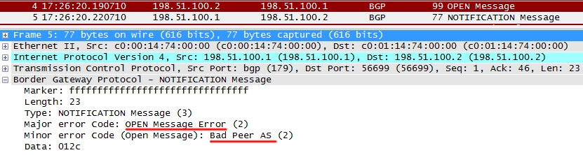 Номера AS в сообщении OPEN должны совпадать с настройками на удалённой стороне