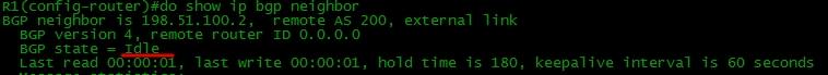 BGP находится в соcтоянии IDLE, если нет маршрута к BGP-соседу.