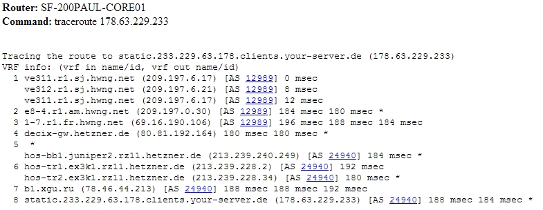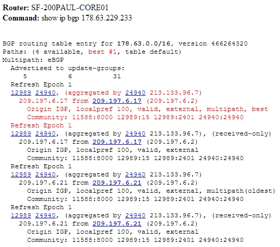Одним из очень мощных инструментов работы с BGP – Looking Glass. Это сервера, расположенные в Интернете, которые позволяют взглянуть на сеть извне: проверить доступность, просмотреть через какие AS лежит путь в вашу автономную систему, запустить трассировку до своих внутренних адресов.