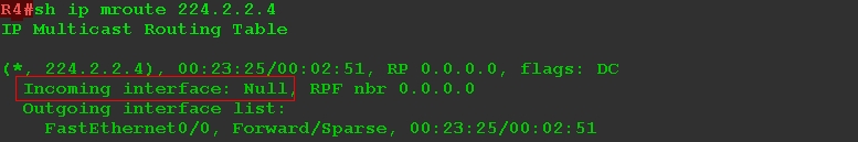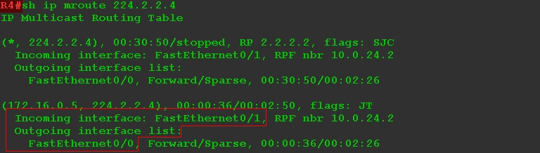 RX(config-if)#ip pim sparse-modeСразу после этого R4 узнает об источнике трафика для группы 224.2.2.4: