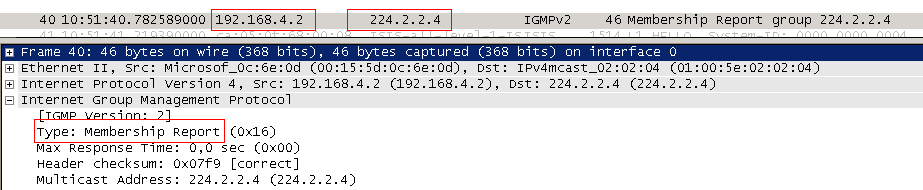 1) Клиент 1 отправляет IGMP Report для группы 224.2.2.4