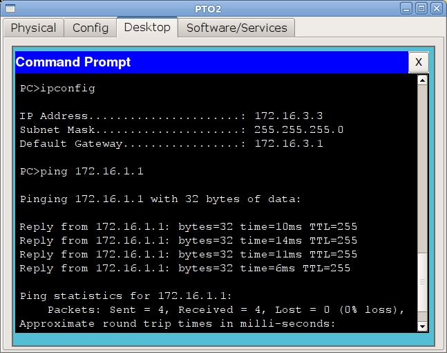 Success rate is 100 percent (5/5), round-trip min/avg/max = 7/62/269 msЕщё интересный опыт: а что если адрес на маршрутизаторе на Васильевском острове маршрут в подсеть 172.16.3.0/24 пропишем на Озерки, а не в Москву? Ну чисто для интереса. Что произойдёт в этом случае?